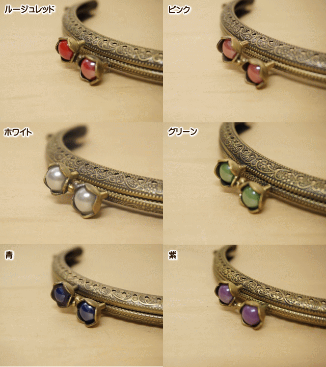 一般に販売されている玉付きのがま口口金は、 柄の入っていない無地がほとんど。